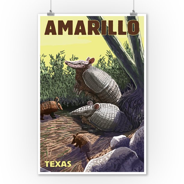 Amarillo Texas Armadillo Lantern Press Artwork 9x12 Art Print Wall Decor Travel Poster Walmart Com