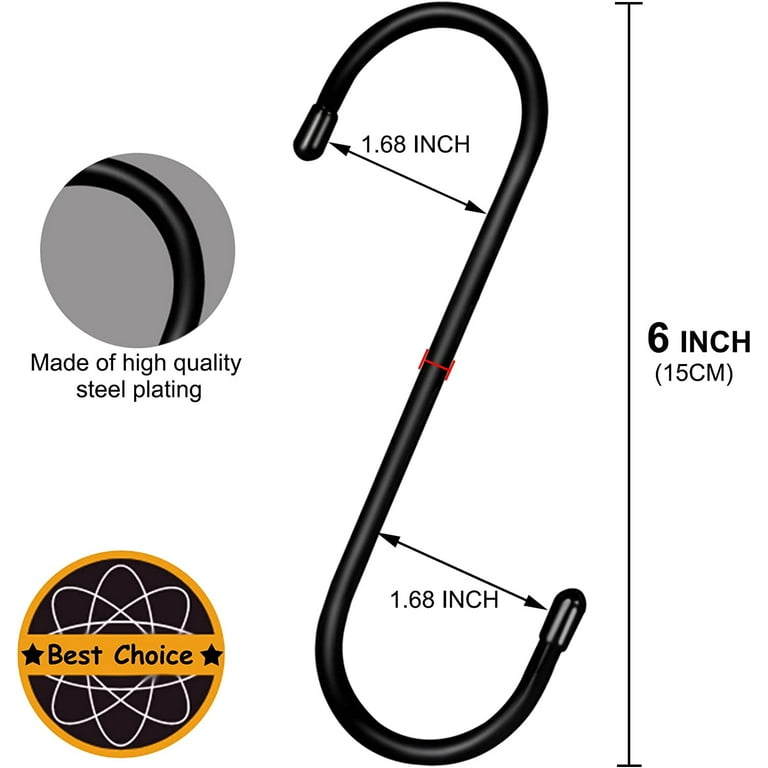 6 Inch Black Large S Hanging Hooks Heavy Duty Thicker S Shaped Hooks For Hanging Clothes Plants Pans Pots Towels Bags Cups Birdfeeder Extension S Shaped Hooks For Home Kitchen Garden Patio Walmart Com